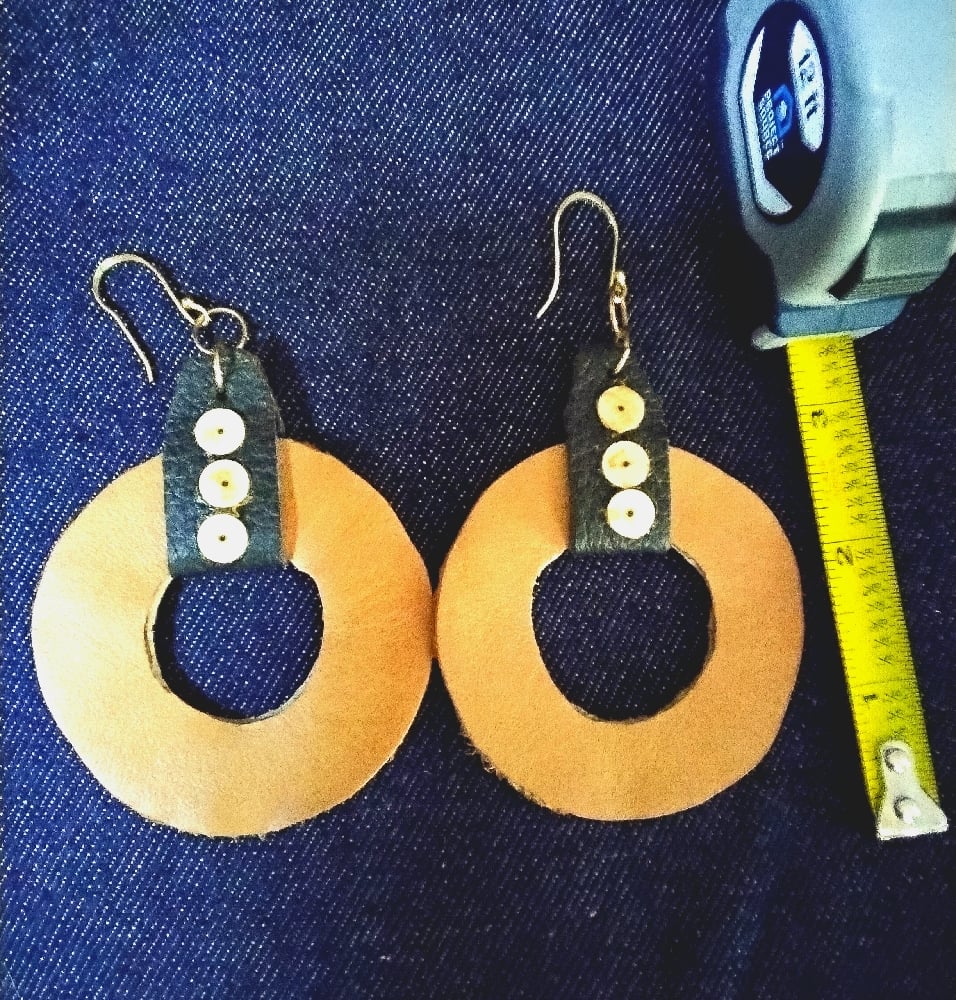 Large round leather earrings...beige and brown