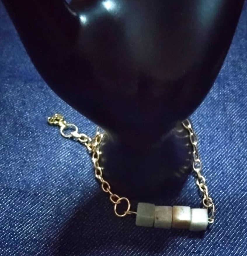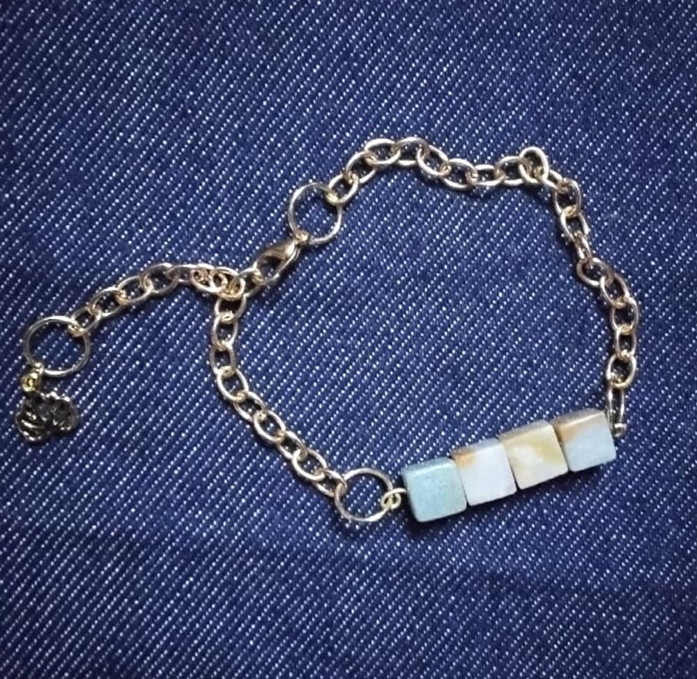 Gold plated chain bracelet with amazonite beads and lotus charm