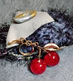 Clay button closure w/cherry bag charm