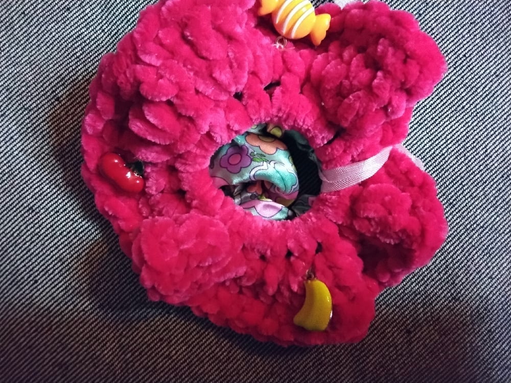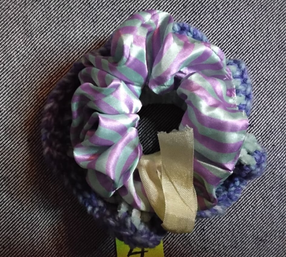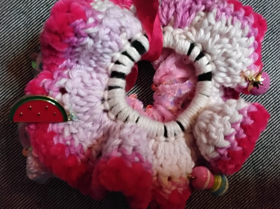 Pair of scrunchies...one crocheted with charms